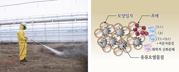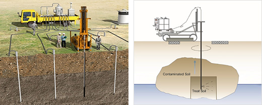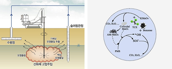 지반을 절삭/파쇄시켜 토양에 흡착된 오염물질을 산화, 탈리시켜 제거하는 기술,