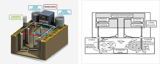 양극과 음극의 전기장에 의하여 오염물질의 이동속도를 촉진시켜