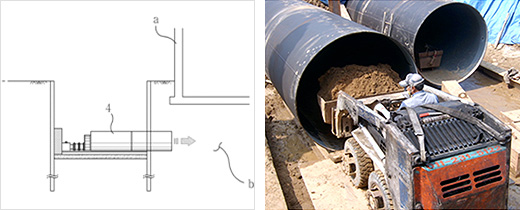 건물하부에 강관을 압입한 후 추진관 내 오염토양을 굴착/정화, 강관 사이는